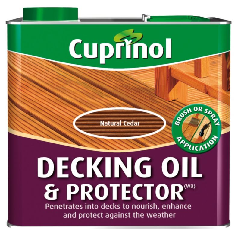 Hardwood garden furniture or decking to provide a matt, enhancing and natural finish. Oils penetrate into CUPRINOL DECKING OIL & PROTECTOR(WB) Size: 5 litre NATURAL CEDAR NATURAL OAK NATURAL PINE CUPRINOL GARDEN WOOD PRESERVER(BP)* ... Read Here